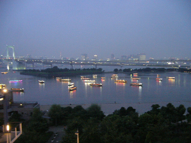 仕上げはレインボーブリッジと屋形船の見えるテラスで夕食