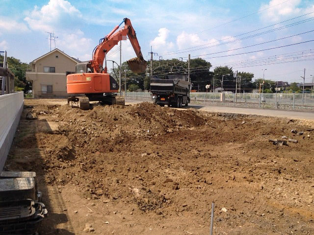 試掘して大きめの石が出てきて表面を全て取り除くように言われている現場の土砂撤去が昨日から始まりました。