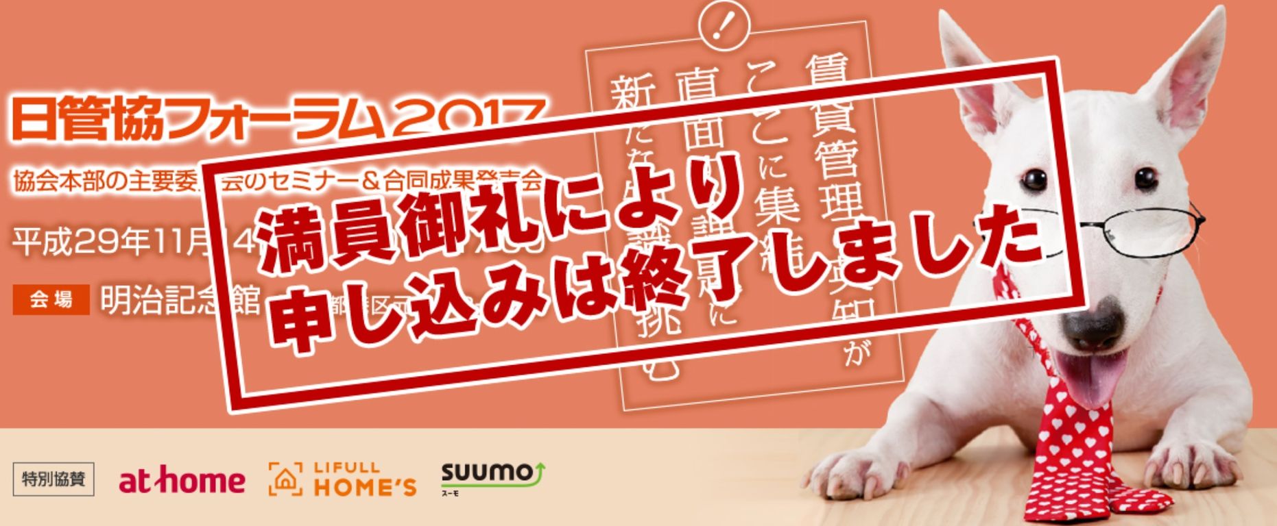 さて、本日は日本最大の賃貸管理業界団体である日管協さん主催の日管協フォーラム2017の開催日です。