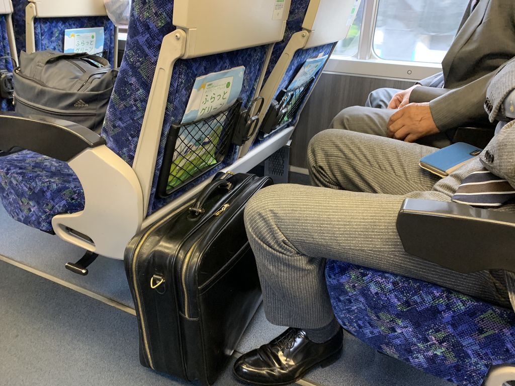 売主さんと3人でお寿司屋さん行ってビール飲んでから電車に乗って地元に帰りましたが、実に目立つカバンでしたよ