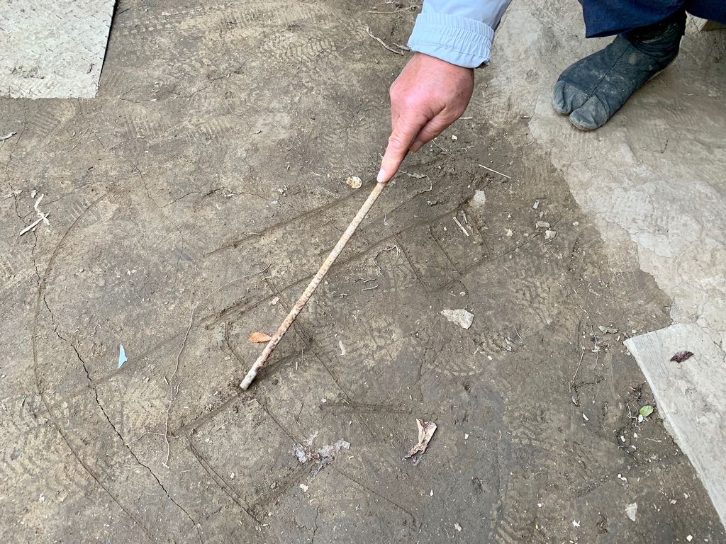 土地の形を地面に書いたり、雨が降っている日以外は打ち合わせスペースとなっていますが、自分としては冬は寒すぎるし夏は蚊が多くて苦手な場所なのです。