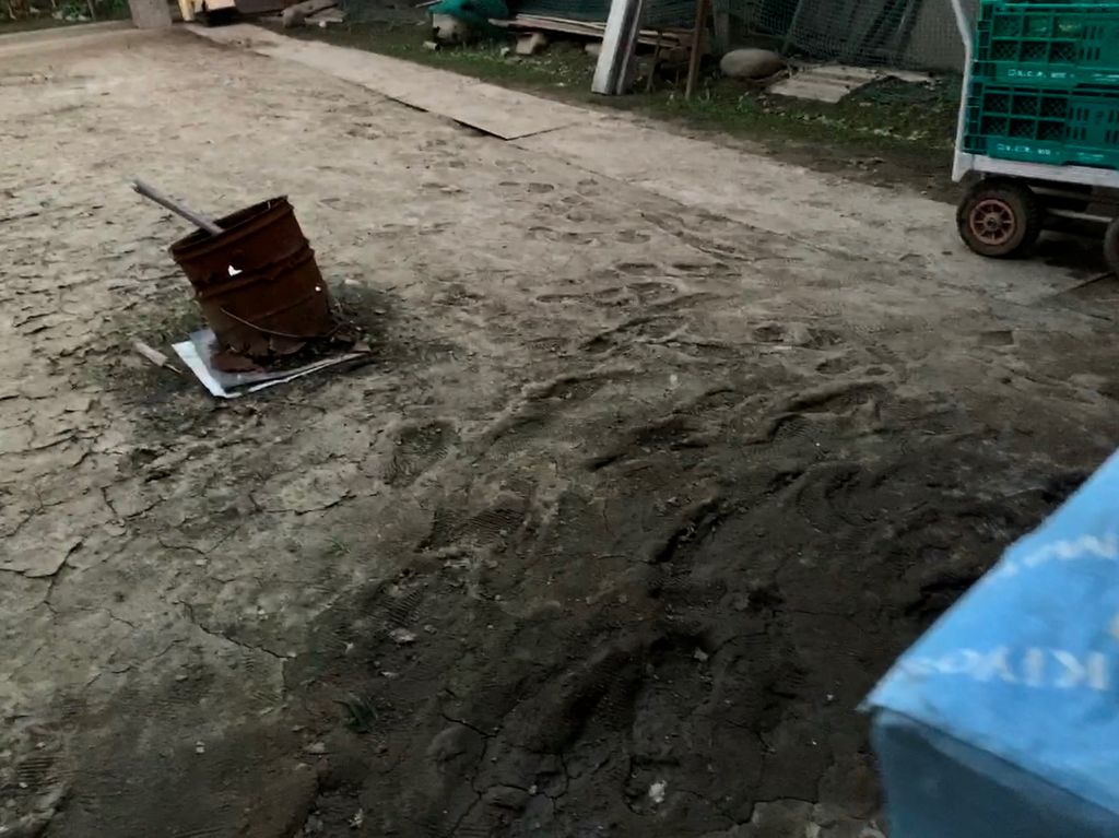 と、言う事でいつもの納屋の前にあるアウトドアなテーブルのイスに案内されます。土地の形を地面に書いたり、雨が降っている日以外は打ち合わせスペースとなっていますが、自分としては冬は寒すぎるし夏は蚊が多くて苦手な場所なのです。