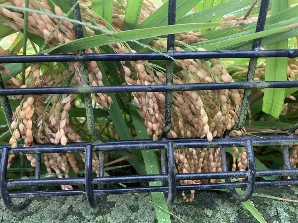 我が家の隣の田んぼ。例年だと稲刈りが終わっている時期なのですが、まだ収穫されていない感じです。