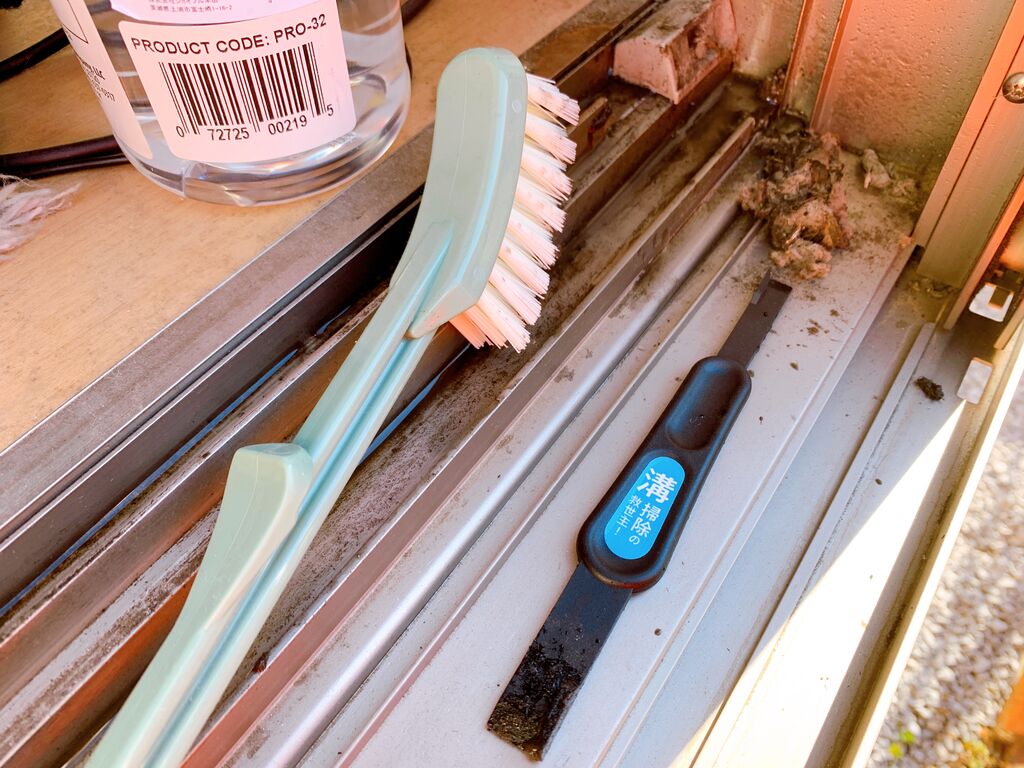 窓なんて拭けば良いんだと思って始めたのですが、窓枠に結構なホコリが溜まっている状態だと気が付き、捨てる予定の歯ブラシで対応しようとしましたが、全然取れません。