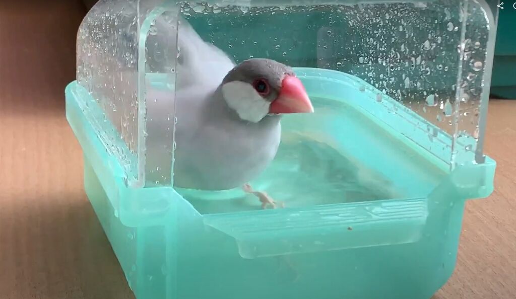 若鳥の頃は、ボチャんと水に飛び込んで大暴れするような感じで1分で出て来たものですが、年を取ってからは風呂に入っているように3分くらいじっとしている入り方になりました。水浴びルームが大好きだったのだからピヨらしい最後でしたよ。