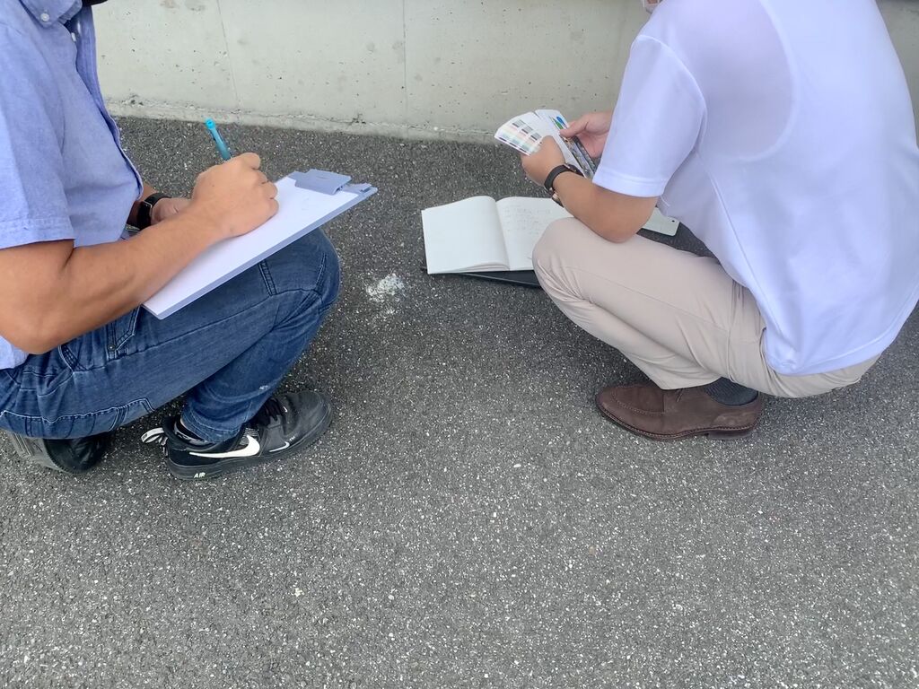 ですが、今回は物件オーナーさんより 「今までと同じような色で良いから任せる」と言われてしまい現地打ち合わせは塗装屋さんと営業課N課長だけでオーナーさんの立ち合いは無し。