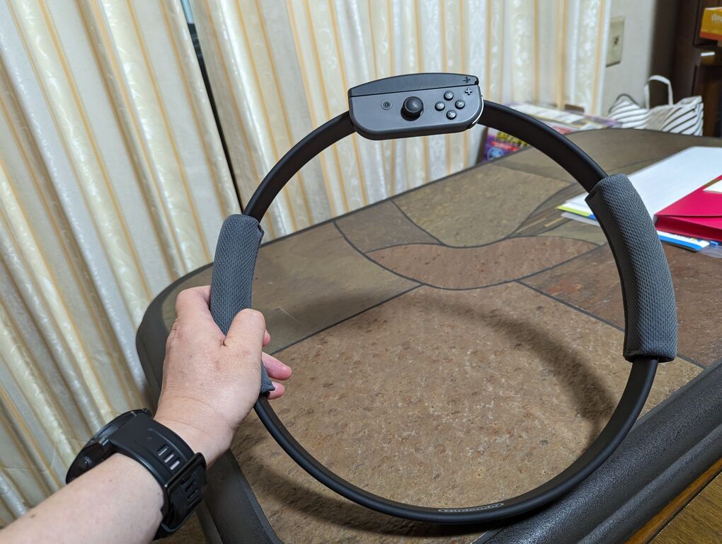 これがまた、ただのゲームでは無く、リングを使っての筋トレと足踏みですが、走っている感覚もバッチリあります。エアコンが効いている部屋だったのですが、屋外だったら大汗かいているレベルだと確認出来ました。