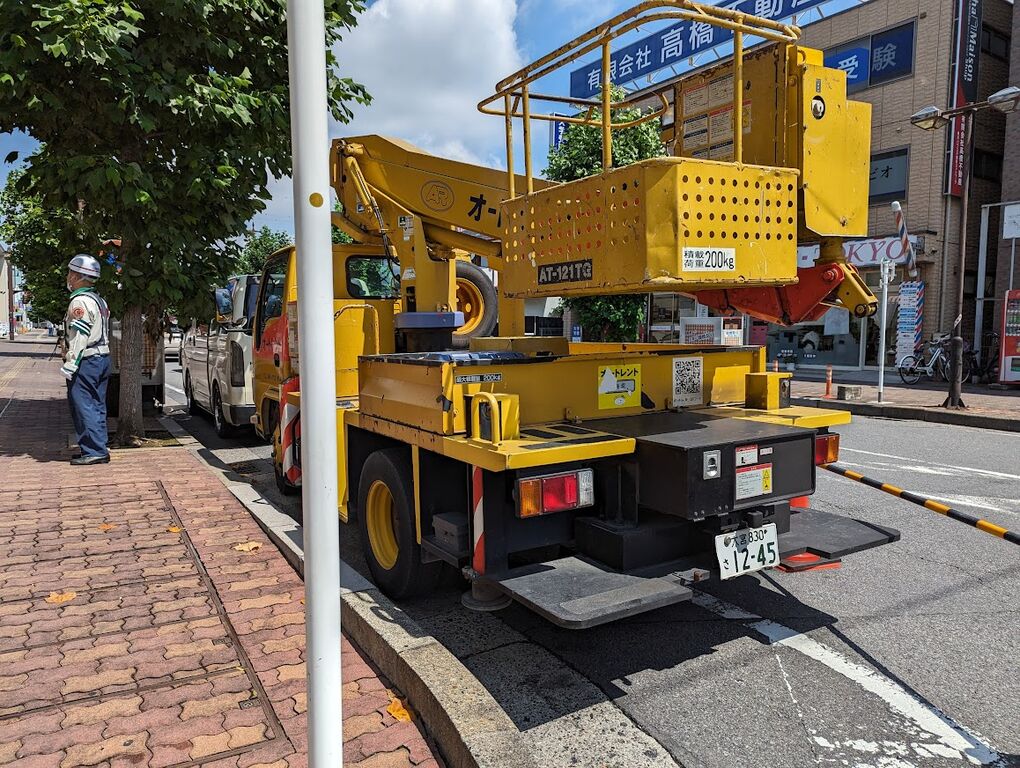 道路占用許可を取って高所作業車を入れて警備員を配置してと、かなり大掛かりなので費用も大掛かりです・・・