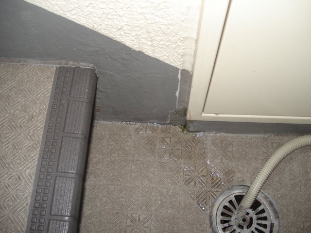 漏れている箇所を見ると外壁に面した天井と床に漏れの跡がありました。
