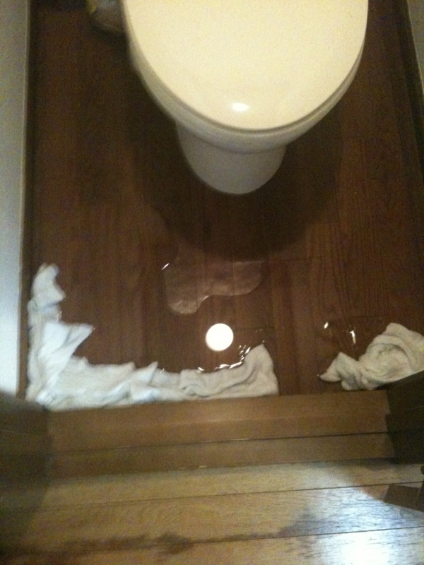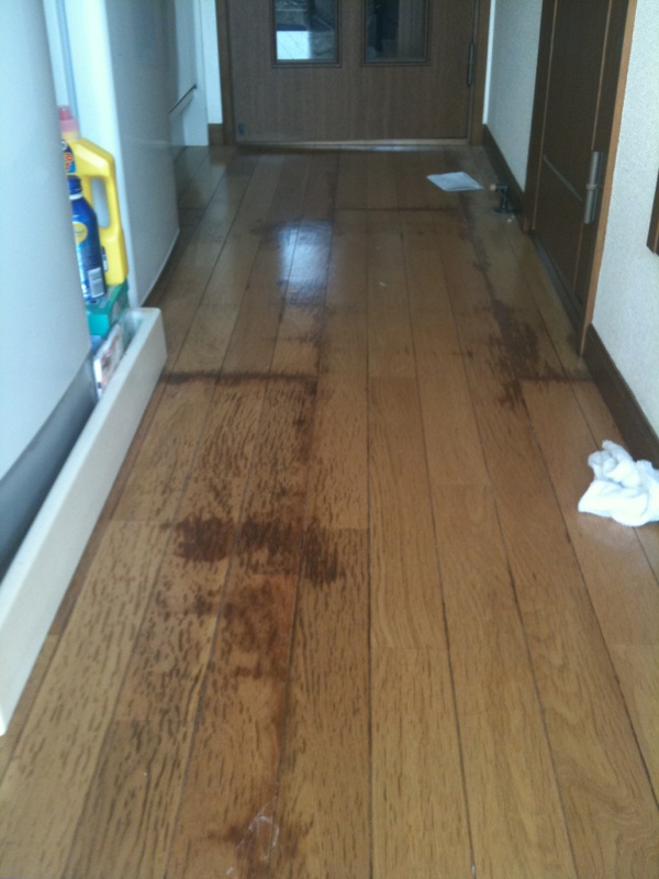 フローリングも既に水を吸って変色しています。