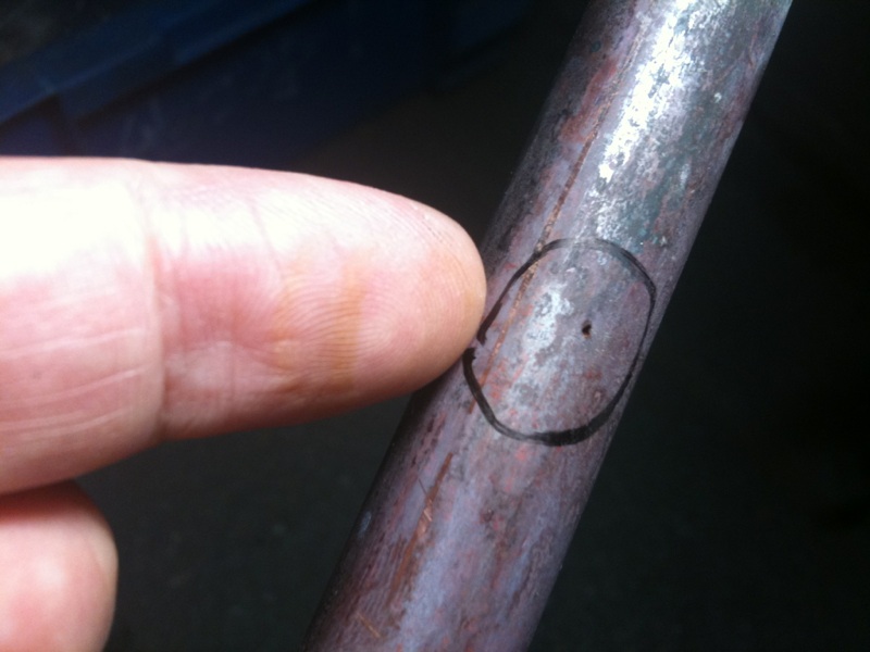 管を切って明るいところで見てみると目視でもわかる位の穴と光に透かして見ないとわからない穴が二つ開いていました。