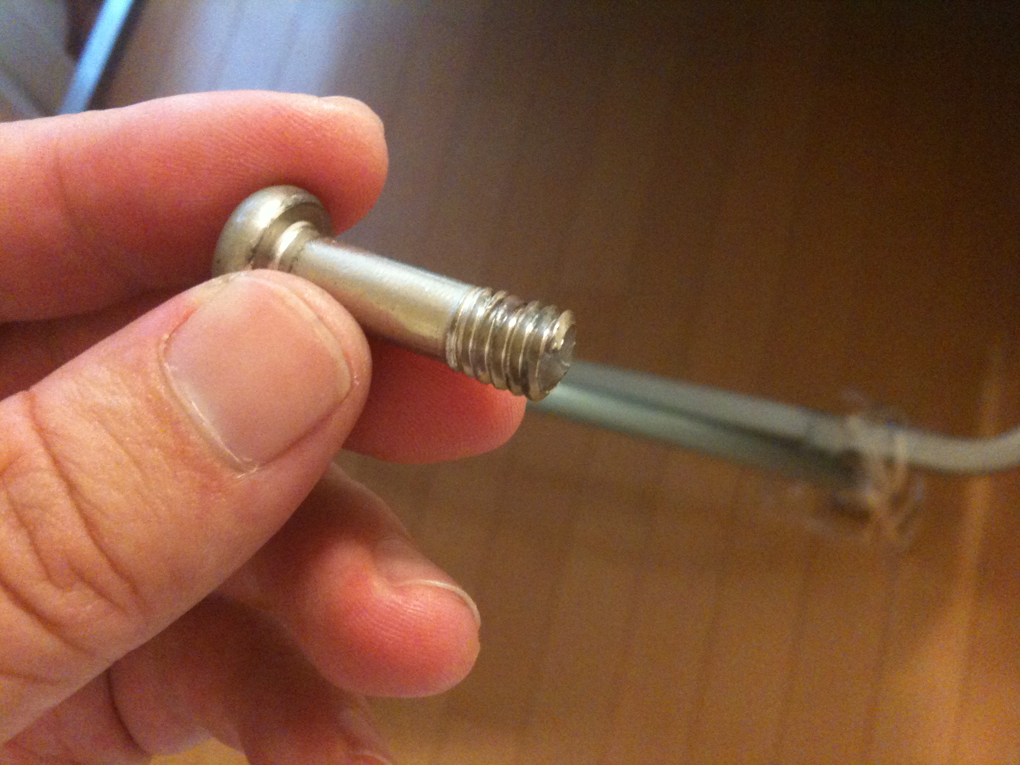 こういう時は同じ径のボルトを買ってきて交換すれば良いのですが夜だったのでヒモで縛りました。でも、自分の体重で切れちゃったので仕方なくベットの片方の足無しで斜めにして寝ましたよ