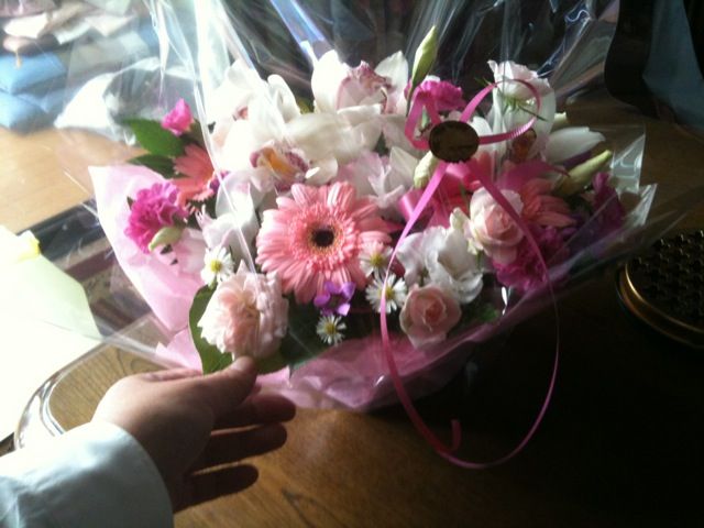 誕生日おめでとう!と管理課のS君と一緒に花を持って行くと「今日が誕生日なの?」とビックリされました。