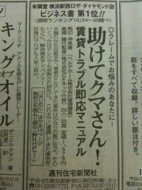 昨日の日経新聞朝刊1面に出版社さんが広告を出してくれました。横浜西口有隣堂ザ・ダイヤモンド店さんのビジネス書カテゴリで1週間ほど1位だったそうです。