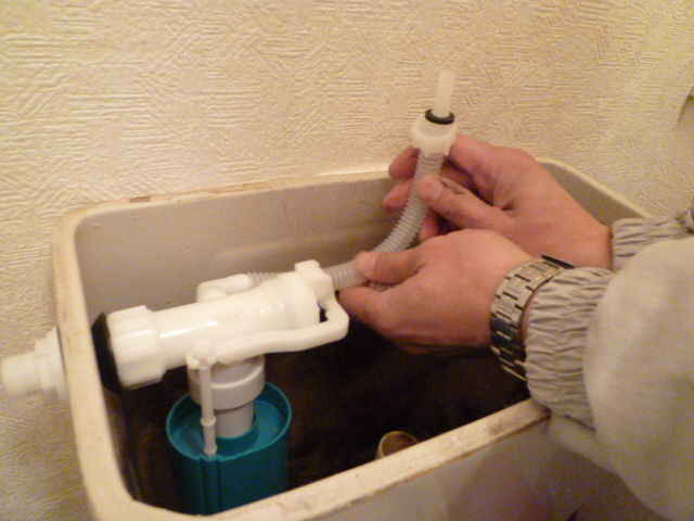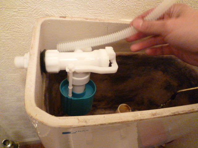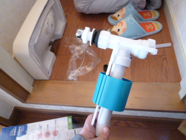 ボールタップがダメになっちゃったんです。ボールタップとはタンク内の水位が上がると浮き球が上がってきて水の流入をストップさせる部品です。