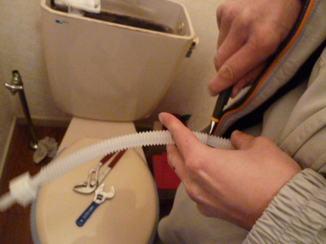 S君はいろんな修理事を行っているのですが、オーナー様宅に訪問する前にトイレの修理に密着。
