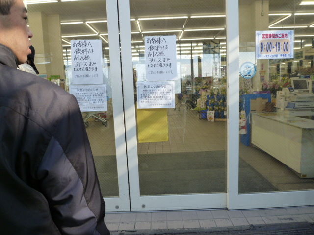目的は昨日連絡が多かった瓦崩壊の応急処置用のブルーシート。開店の1時間前から並んでいたので余裕で買えました。