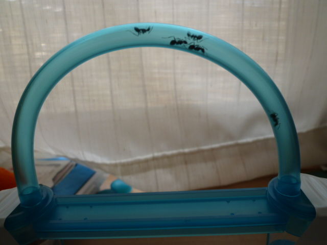 昨日の朝までずっと打ち合わせ中だったアリも動き出しましたが穴を掘ってくれません。説明書には穴を掘るまで「早くて1時間、遅くて3週間」とか書いてあるので気長に待ちたいと自分は思ってます。