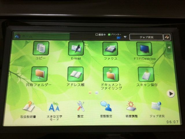 自分の座っている席は、振り返るとコピー・FAX・スキャナーの複合機があるのですが先日リニューアルしました。今時の複合機はパソコンみたいにいろいろな機能がついてます。