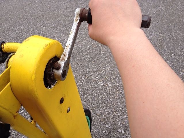 一番ハマったのが手コギ自転車2台での対決です。これが良く出来てて手でペダルを回すと前に進みます。
