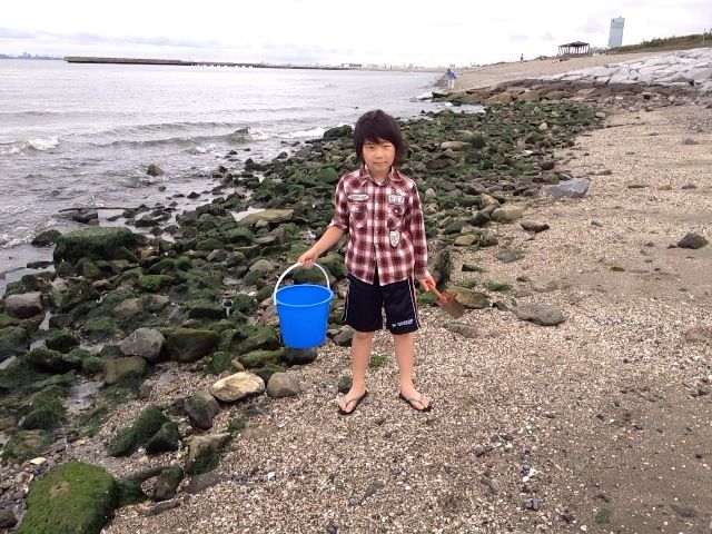 雨が降ったり止んだりの天気でしたが、せっかくの休みですので、朝から三男が楽しみにしていた稲毛海浜公園へ濡れてもいいようにビーチサンダルと着替え、タオルを持ってシャベルとバケツも持参。