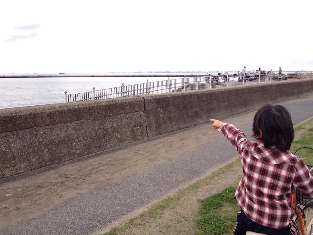 釣りをしている人たちの迷惑にならないように歩かせましたが、かなり長い堤防で途中で「時間がもったいない」と言われて引き返しました