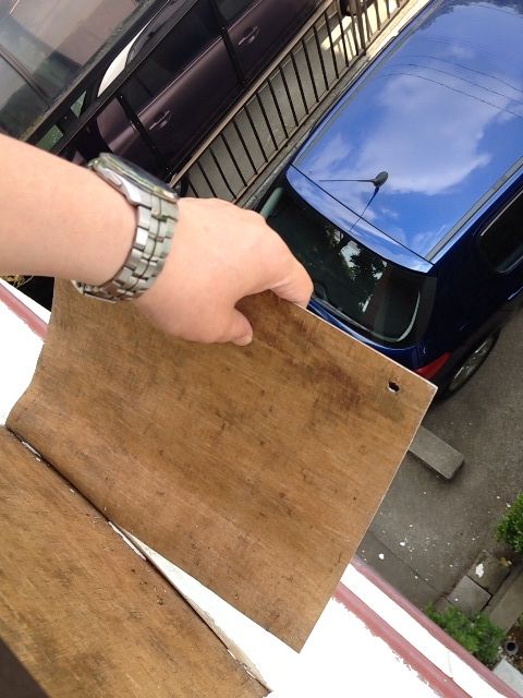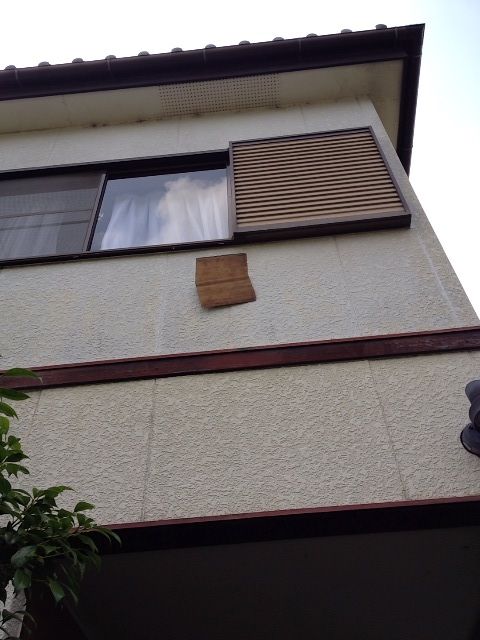 何でこんな事になったのか原因不明ですが、奥さんによると「突然はがれた」との事でした。窓から届く場所だったので、はがしてきましたが、事故にならなくて良かったです。