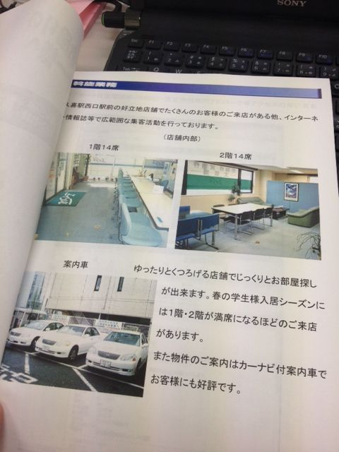 意地になって自宅の古いPCを探したら出てきました。ホント手作りだったのですが、「春の学生様入居シーズンには1階・2階が満席になるほどのご来店があります」なんて書いてあります・・・