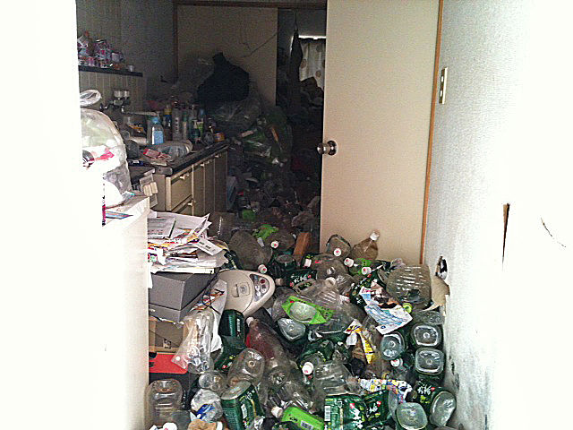 S君の撮った写真の時には山積みだった物の大部分は撤去されていましたが、厚さ10cmくらいにコーティングされたように物が敷き詰められていました