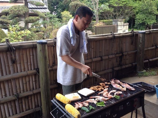 駐車場でバーベキューの予定でしたが、暑いので急遽、高橋シェフの実家に場所を変更しました。