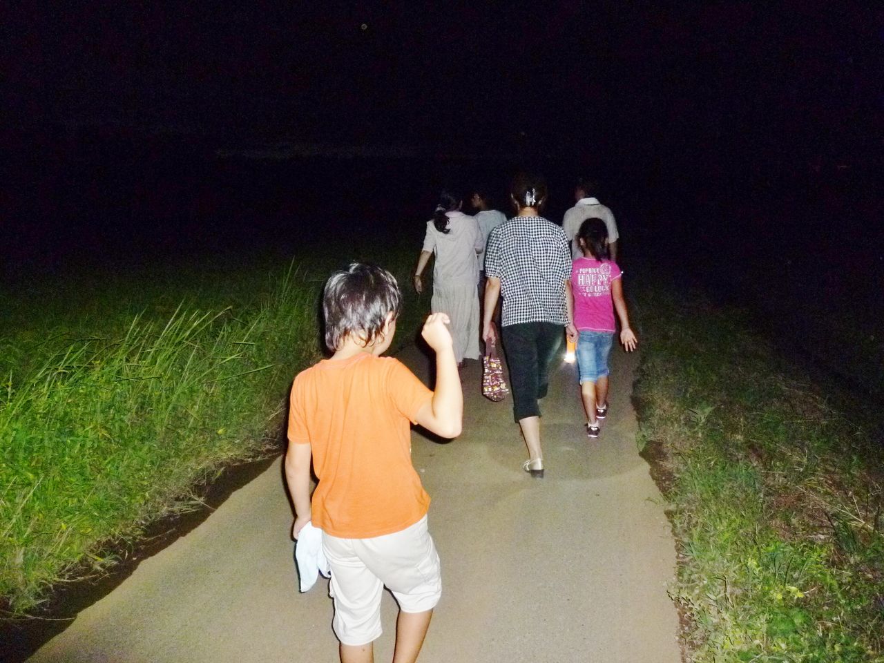 10人の団体で真っ暗な農道を歩き出しました。街灯が全くないので月の光が頼りになります。