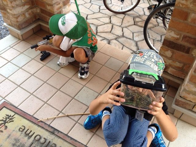 三男 「バッタはカワイソウだから違うエサあげといたよ」