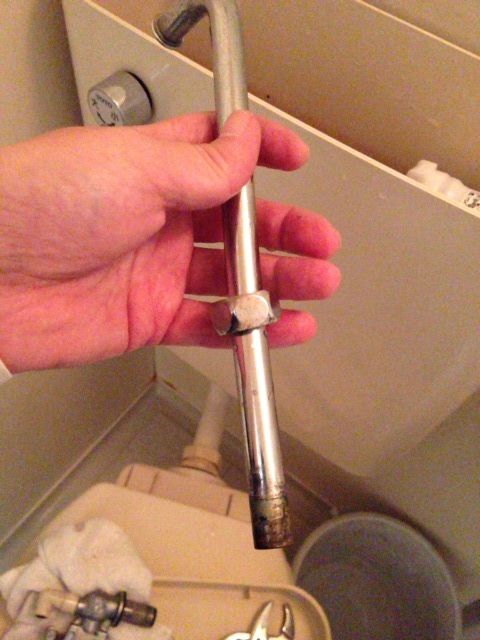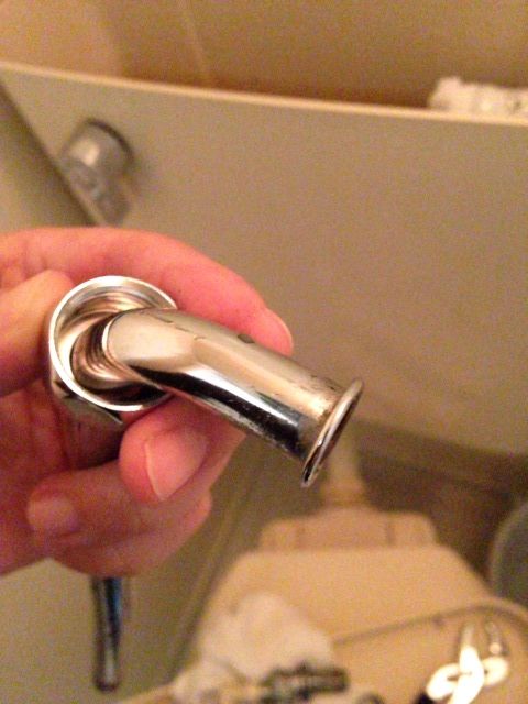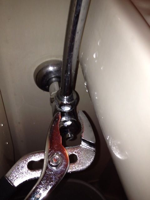 給水管に新しいボールタップの金具を付けるために給水管の下の部分も外します。