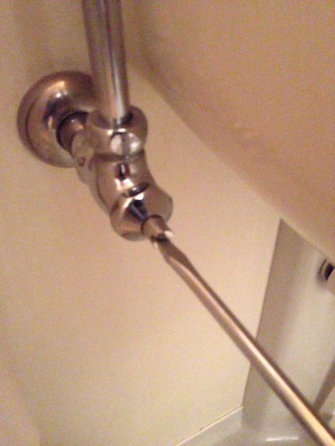 最初にタンクへの給水管に付いている止水栓をマイナスドライバーでしっかり締めます。