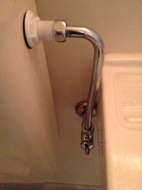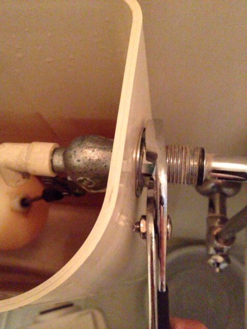 タンクに付いているボールタップの取り付けネジを給水管側から緩めます。