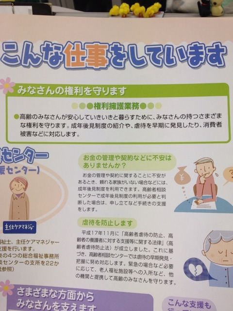 職員さんは高齢者の方が、詐欺にあったりしないように相談を受けたら立会してりしているとの事をパンフレットで説明してくれました。