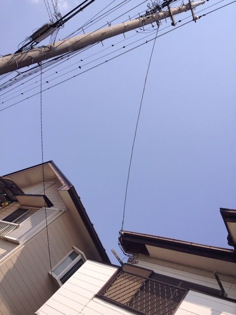 電柱が傾いたのか建物が傾いたのか電線が縮んだのか・・・