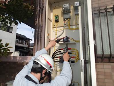 ヒューズは電柱の上にあるBOXの中に入っているそうで、さっそく電柱に登って交換してくれました。