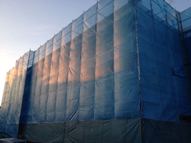 この足場を使って数週間で塗装作業を行いますが立ち上がりが早いってのは良いものです。