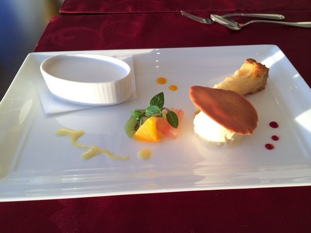 4時45分の呼び出しで3時半頃到着したので夕日が見えるオシャレな展望レストランでオジサン二人でケーキ食べながら寛がせてもらいましたよ