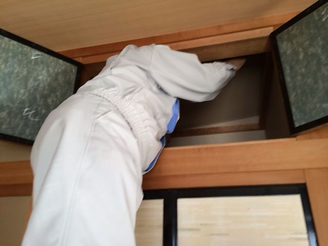 床下や屋根裏の様子も確認しますが、この物件は屋根裏の入口が押入れの上にある天袋にあるので検査員さん大変そうでした。