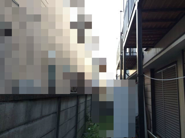 夕方に行ったので暗く感じましたが、東西南北建物に囲まれた旗竿状の敷地に建っている物件です。まぁ他人様の物件にケチ付ける気はありませんが、かなり苦労しそうな感じがします。