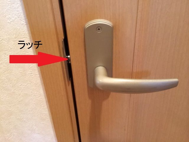 対処方法は意外と簡単で、ドアの隙間に細い定規などを突っ込んでラッチを引っ込めるとドアを開けられます。