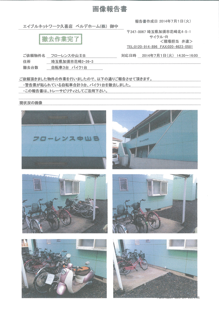 先日、新規に自転車撤去業者を開拓した話をしましたが、当たりの業者さんでした。盗難調査や持ち主への警告等を管理会社側で行えば5台以上で無料と言うサービスなのですが、全部お任せ&撤去後の言いがかり補償まで付くタイプだと1台2000円で請け負ってくれます。