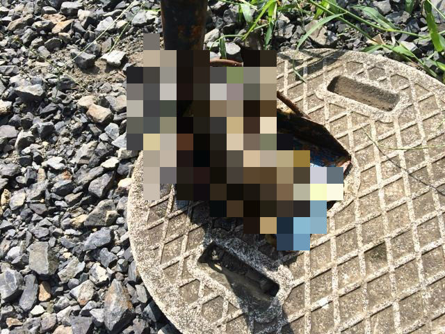 業者さんが、詰まりを除去して外のマンホールで証拠の物を取り出しました。