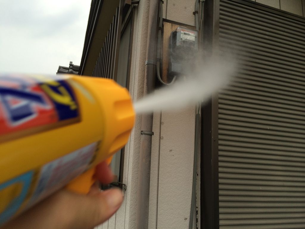 キンチョールでも退治できますが、念のためマグナムジェットで攻撃します。ホントはアタッカーとディフェンスの2人で対応するのが理想だと思いますが、最近は1人でやっちゃいます。