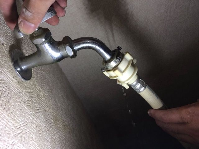 取り急ぎ、水栓金具を全自動洗濯機用に変えてみたのですが、新品にしたにも関わらずホースを動かすと水が垂れてきますので、こちらは入居者さん管轄の洗濯機ホースに問題がある事がわかりました。後日、ホースを交換して繋いだところ水垂れが止まりました。