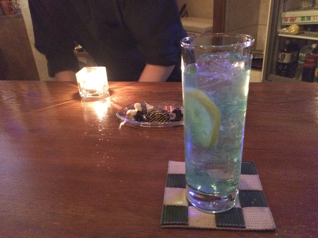 そして、最後は営業課N君と、行きつけのバーで2次会です。お茶・ワイン・何とかトニックと飲み物の写真が揃いましたが、かなりのアルコール量を摂取致しました。