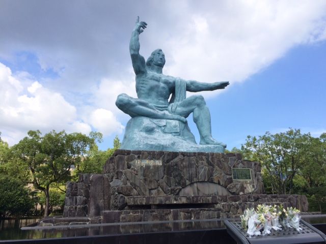 車で1時間ちょっと走って到着したのが平和公園です。教科書やテレビでは何度も見ていた記念像ですが、原爆が落とされた場所にいると事実の恐ろしさが伝わってくるものです。