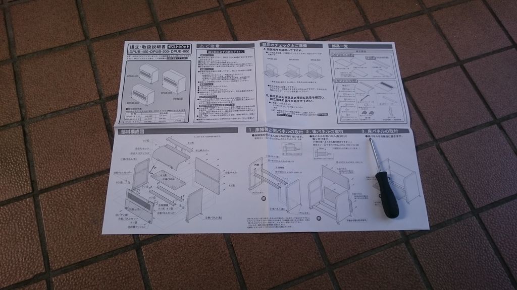 取り付けてきたのは、自社所有の3DK4世帯のアパート用ですが、アパートに持っていく前に会社の通路で組み立てました。1回目の組み立てなので30分掛かってしまいましたが次は20分かからないと思います。